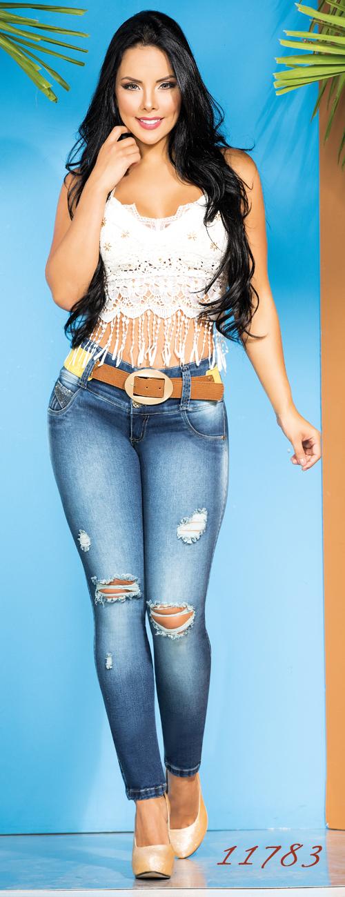 Luce tus mejores curvas con este hermoso jean Levantacola, 100% Colombiano, que podrás lucir en toda ocasión. Con un lavado desgastado y una bonita decoración en los dos bolsillos traseros. Fabricado con tela de excelente calidad que solo podrás encontrar aquí en Latinmoda. Siéntete sexy y moderna con nuestras prendas.